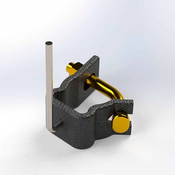 O suporte para rodapé é utilizado para fixar as tábuas de proteção nas laterais do andaime, garantindo mais segurança e estabilidade durante o trabalho em altura.